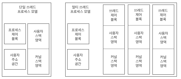 동일한 프로세스에 포함되는 쓰레드를 동시에 실행하고 싶은 경우 각 쓰레드마다 프로세스 이미지가 있는 것이