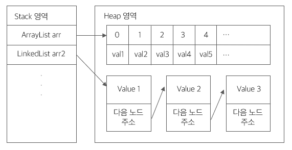 데이터의 개수가 변하지 않는 경우는 ArrayList를 데이터의 갯수가 자주 변하는 경우에는 LinkedList를 사용하는