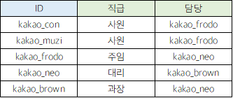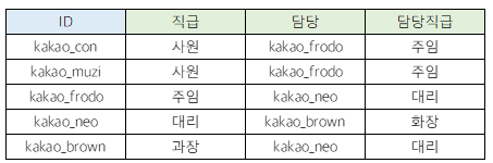 ID, ID 직원의 직급, 담당, 담당의 직급을 조회하기 위해서는 SELF JOIN이 필요하다.