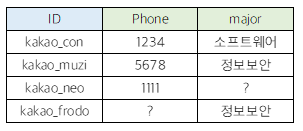테이블의 합집합을 원할 때 사용한다. 아래의 테이블을 FULL OUTER JOIN한 결과는 다음과 같다.