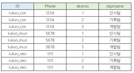 기준 테이블과 JOIN 테이블의 중복된 값을 가져오기 위해 사용한다.결과는 다음과 같다.