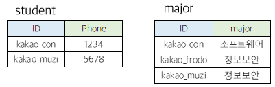 테이블과 테이블 사이에 적어도 하나의 컬럼을 공유해야한다.