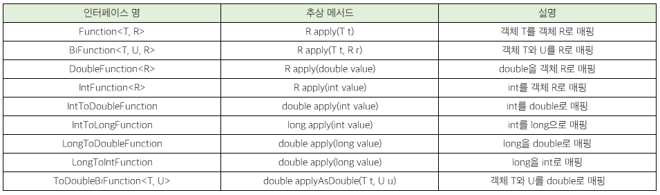 매개 값을 리턴 타입으로 변환하는 인터페이스다.
